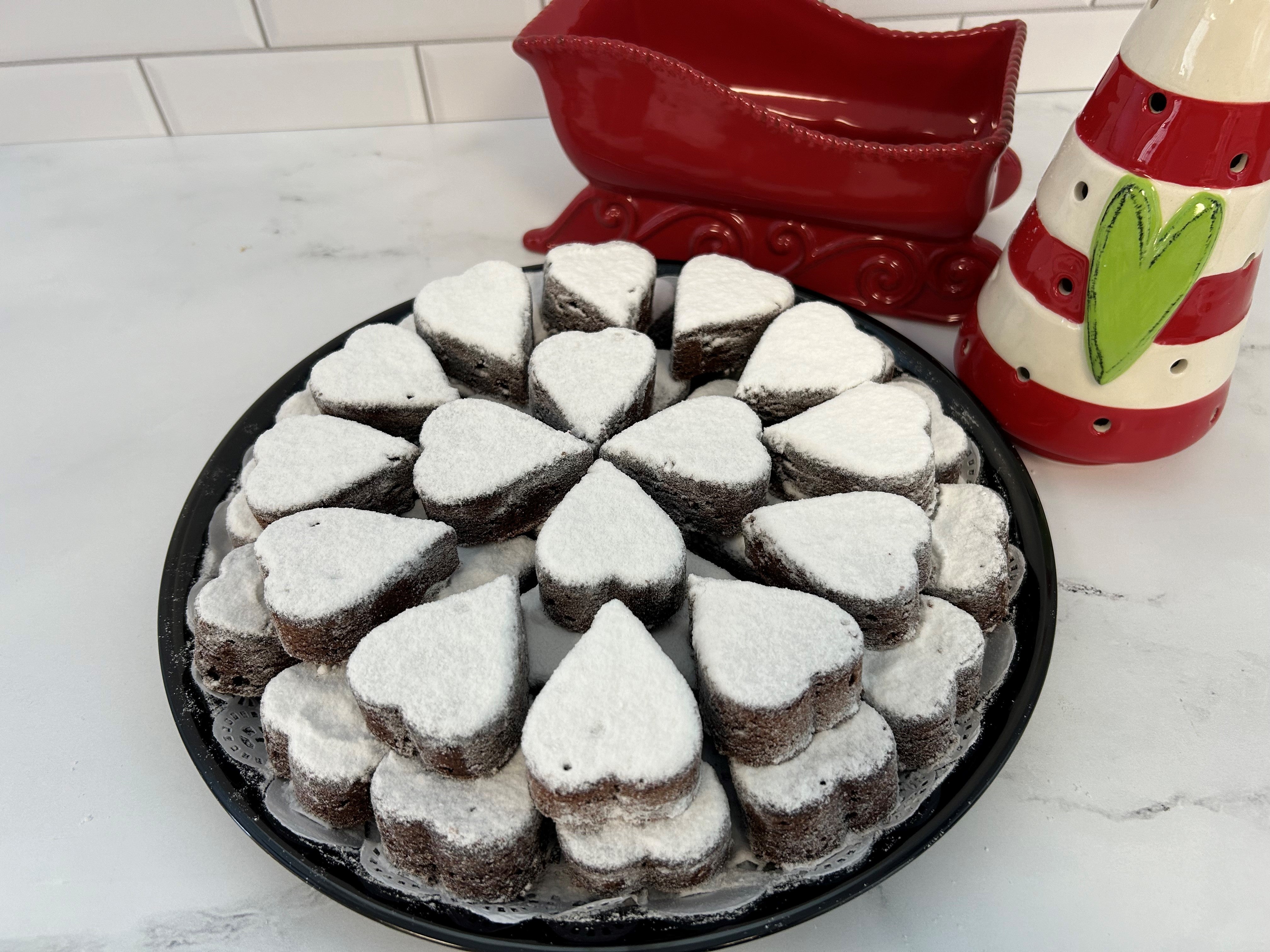 A whole tray of our iconic hand cut heart shaped brownies for the holidays- nothing better!